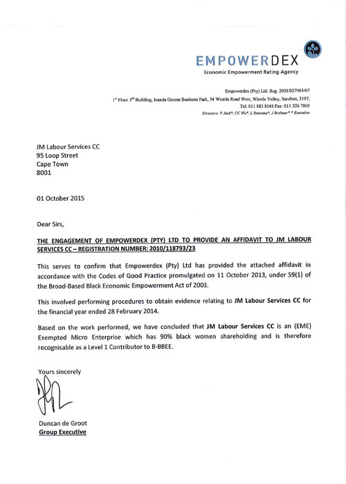 The Company commits itself to eliminate discrimination based on race, gender, sex, pregnancy, marital status, family responsibility, colour, sexual orientation, ethnic or social origin, age, disability, religion, conscience, belief political opinion, culture, and language and HIV status. Existing employees will be empowered and developed as far as reasonably possible within the parameters of business ethics.
